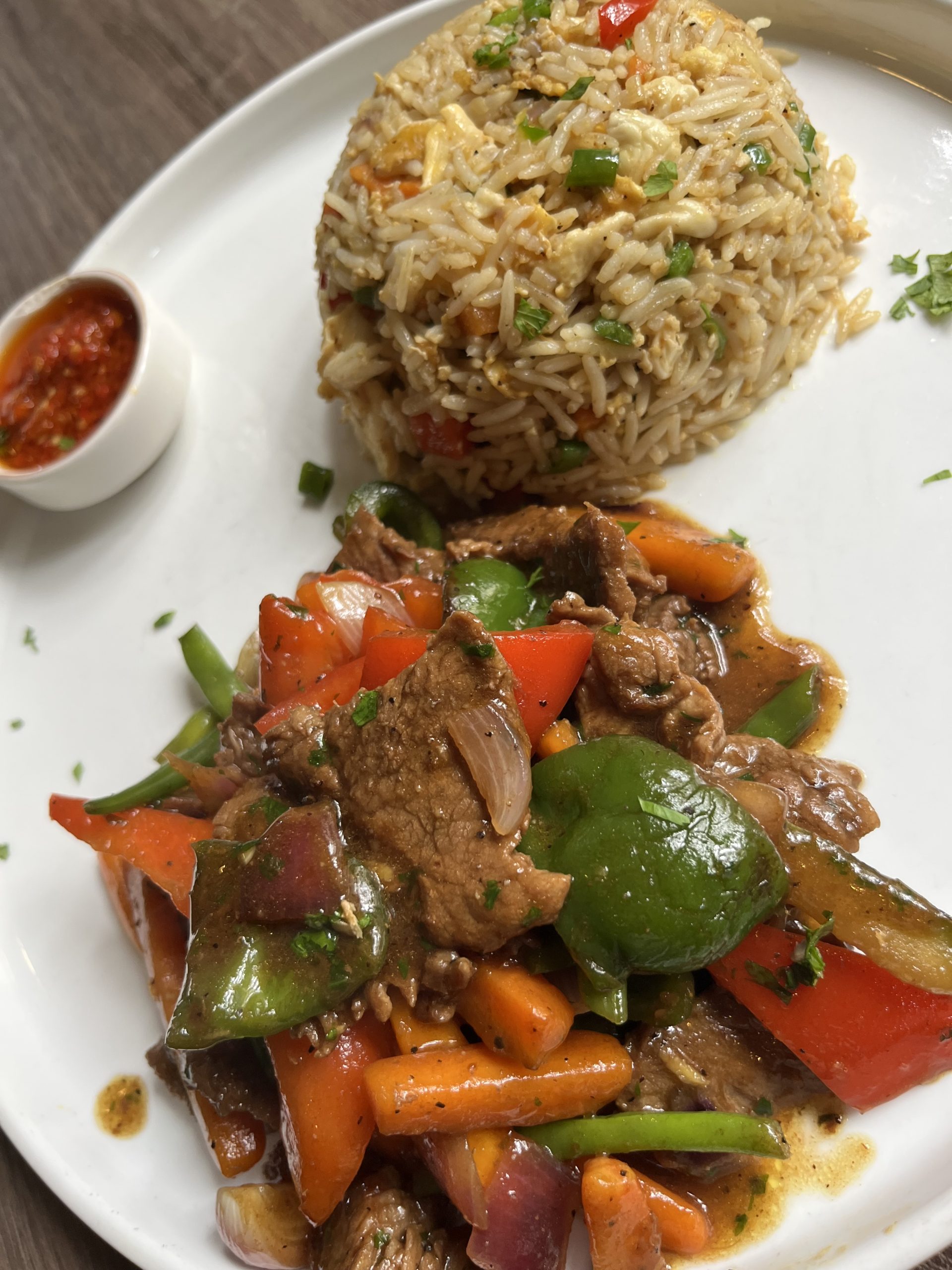 Tenderloin Beef Fillet, Sautéed Onion, Garlic, Red & Green Bell Pepper, Tossed with Hoisin Sauce